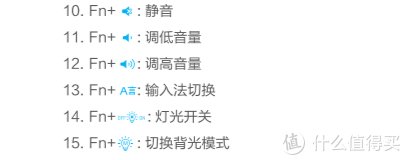 F9 静音 F10 音量减小 F11 音量增加 F12 输入法切换(Ctrl+空格/Shift中英切换)
