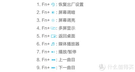 F1 屏幕调暗 F2 屏幕调亮 F3 多屏显示 F4 返回桌面(Win+D) F5 媒体播放器(可以打开默认播放器Windows Media Player) F6 播放/暂停 F7 上一曲?F8 下一曲