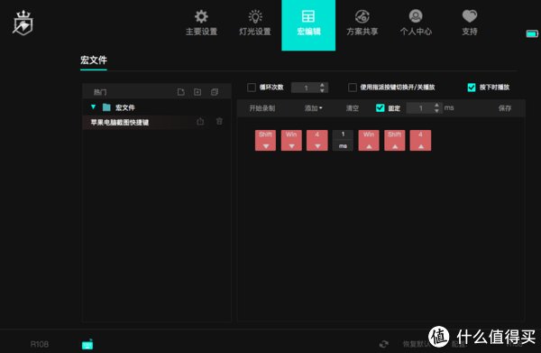 在右侧编辑区录制键盘宏,也可以用添加的方式逐个按键添加