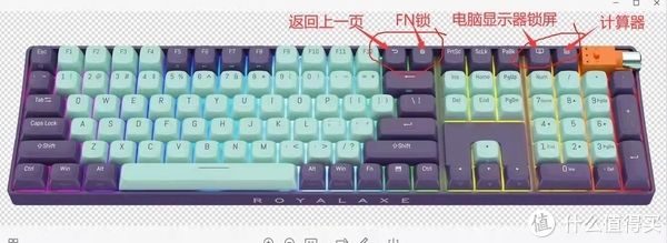 此外,御斧还开发了几个特殊的按键——下图从左到右,依次是返回上一页、Fn锁、电脑显示器锁屏、计算器
