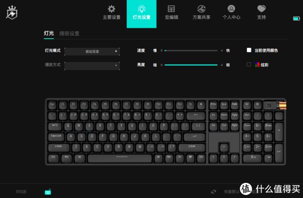 摘要:此外,御斧还开发了几个特殊的按键——下图从左到右,依次是返回上一页、Fn锁、电脑显示器锁屏、计算器 作者:朽潘 灯光可以选择18+4种风格。最后4种需要连接这个驱动进行设置。